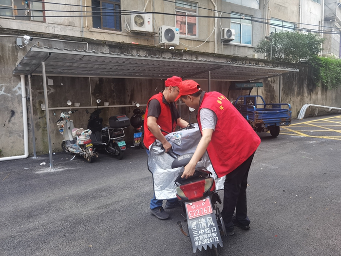 志愿者將電動(dòng)車擺放整齊(永泰縣委文明辦供圖)