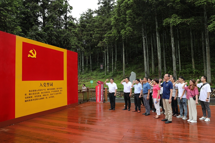 寧德市委文明辦黨員和七步鎮黨員干部在“三庫”生態文明實踐基地重溫入黨誓詞。鄭文敏攝