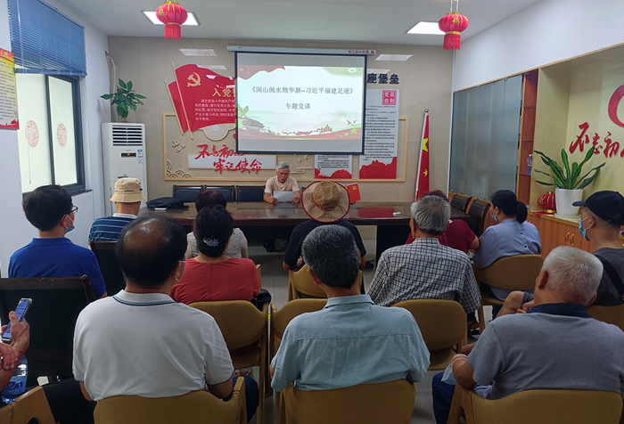 達(dá)道社區(qū)新時(shí)代文明實(shí)踐站作《閩山閩水物華新——習(xí)近平福建足跡》專題黨課(臺(tái)江區(qū)委文明辦供圖)