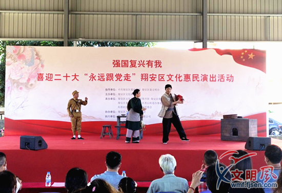 文明風7月11日訊(夏菁 童心悅)7月8日下午,強國復興有我 喜迎二十大“永遠跟黨走”廈門市翔安區文化惠民演出活動(珩厝專場)在香山街道珩厝社區舉行。本次活動由翔安區委宣傳部、區委文明辦指導,區文化和旅游局主辦,區文化館承辦。旨在通過此次活動,深入基層開展黨史學習教育,豐富群眾的文化生活。