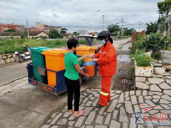 村民主動參與垃圾分類。(同安區市政園林局供圖)