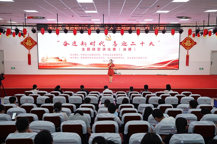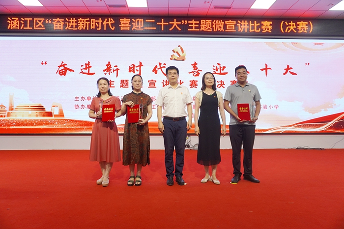 文明風(fēng)7月14日訊 為迎接黨的二十大勝利召開,集中展現(xiàn)新時(shí)代涵江區(qū)廣大干部群眾踔厲奮發(fā)、篤行不怠的新作為、新姿態(tài),7月13日下午,由中共涵江區(qū)委組織部、中共涵江區(qū)委宣傳部聯(lián)合主辦的“奮進(jìn)新時(shí)代 喜迎二十大”微宣講決賽精彩上演。區(qū)委常委、組織部部長(zhǎng)蔡志,區(qū)委常委、宣傳部部長(zhǎng)張茜華,福建新華發(fā)行集團(tuán)莆田分公司副總經(jīng)理吳建立等參加活動(dòng)。