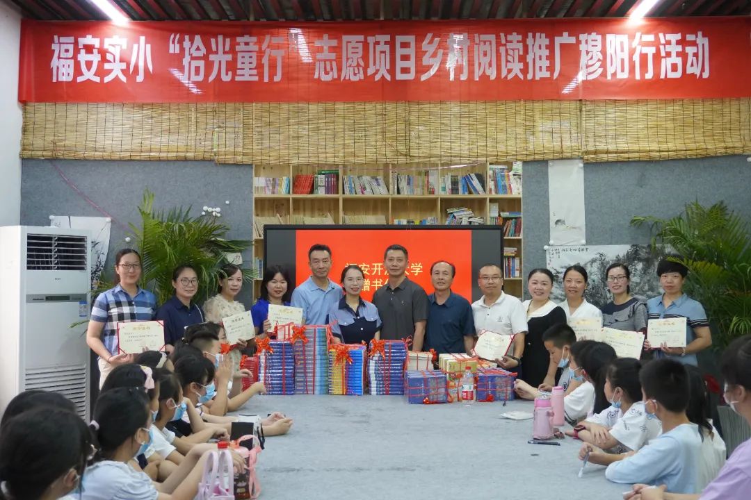 文明風7月15日訊 為有效發揮鄉村“復興少年宮”活動育人和實踐養成作用,7月9日上午,穆陽鎮鄉村“復興少年宮”聯合福安市圖書館、福安開放大學在石馬兜仰止祠“愛故鄉”書院舉辦福安開放大學圖書捐贈儀式暨福安實小“拾光童行”志愿項目鄉村閱讀推廣活動。