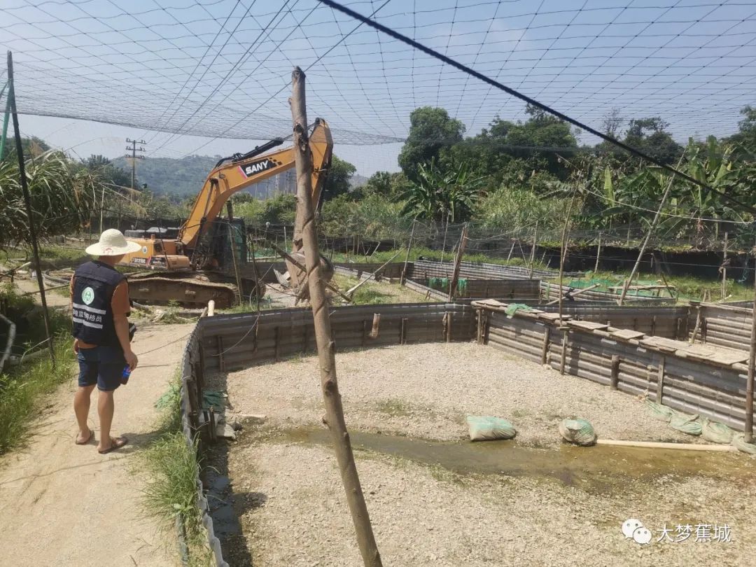 日前,九都鎮(zhèn)集結(jié)各方力量,頂著酷暑出動20余人,對貴村村違規(guī)牛蛙養(yǎng)殖場依法強制拆除,拆除面積約300平方米。
