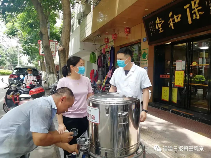 文明風7月21日訊 19日中午,仙游縣解放西路的保和堂藥店免費涼茶供應點,半個小時里,近20人前來裝茶水,不需支付一分錢。