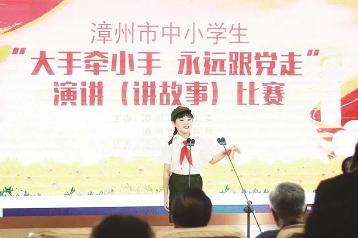 近日,漳州市中小學(xué)生“大手牽小手 永遠(yuǎn)跟黨走”演講(講故事)比賽在漳州市實(shí)驗(yàn)小學(xué)舉行。比賽現(xiàn)場,來自全市各縣(區(qū))的22名參賽選手圍繞對中國共產(chǎn)黨黨史、新中國史、改革開放史、社會(huì)主義發(fā)展史的學(xué)習(xí)體會(huì),以生動(dòng)的語言、感人的事例,結(jié)合自身經(jīng)歷,立足地區(qū)特色,講出了一個(gè)個(gè)動(dòng)人的紅色故事。經(jīng)專家現(xiàn)場評審,當(dāng)場亮分,評選出小學(xué)組、中學(xué)組一等獎(jiǎng)各1名、二等獎(jiǎng)各4名、三等獎(jiǎng)各6名。此次演講比賽,旨在教育引導(dǎo)青少年聽黨話、跟黨走,厚植愛黨愛國情懷,讓紅色基因代代傳承。