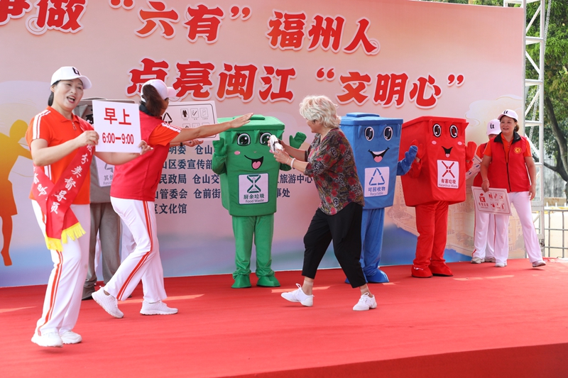 本次活動隨著開場舞《與志愿同行》拉開序幕。接著是情景劇表演《垃圾分類就是好》,在幽默詼諧的表演中倡導市民要爭做“六有”福州人,積極爭做垃圾分類的宣傳者、參與者、推動者,提升保護環境意識。隨后,倉山區文化館文化志愿者唱響志愿者之歌《世界因你而美好》,用歌聲傳遞志愿服務精神,讓廣大市民群眾深切體會到世界因為有志愿者互幫互助而更加美好。活動現場,福州市最美志愿者代表還宣讀了《爭做“六有”福州人倡議書》,倡導廣大市民群眾共同打造信仰堅定、崇德向善、文化厚重、和諧宜居、人民滿意的文明城市。活動最后在唯美的《天下福地 最美福州》歌舞表演中落下帷幕。
