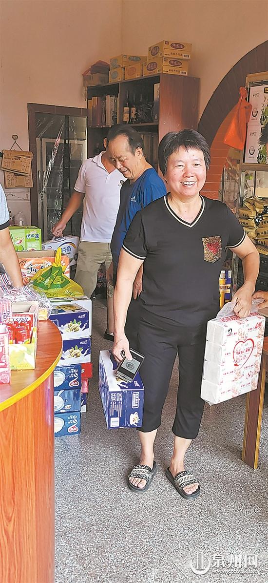 兌換商品后,村民開心地笑了。