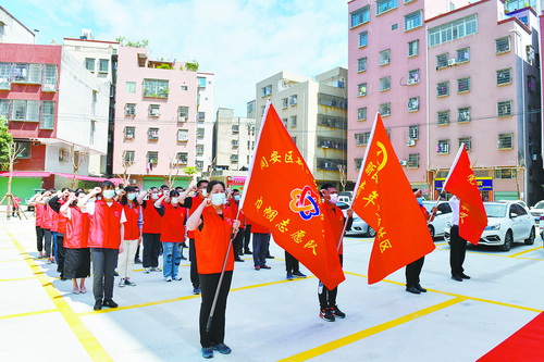 同安區“三支隊伍”凝聚黨員代表、團員青年、巾幗婦女等力量。圖為授旗儀式。 (同安區 供圖)
