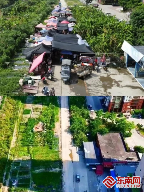 金馬小區“馬路市場”整治前后對比。圖源寧德城市管理