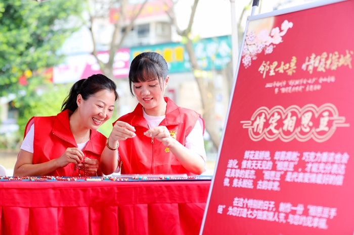 現場還設置了七夕蠶豆品嘗區,七夕民俗打卡區,閩臺七夕節俗展示以及黨史學習宣傳等精彩的展示區,而由各參加活動的文明單位組成的志愿服務隊也為市民朋友提供了豐富多彩的志愿服務活動,區委文明辦現場組織志愿者開展了移風易俗宣傳,區委區直機關工委組織黨員志愿者現場講解黨史知識,宣傳近鄰黨建并現場派發宣傳品及宣傳資料,北京同仁堂倉山萬達店開展防暑送清涼志愿服務活動也吸引了大量市民駐足。市民朋友紛紛在“全家福”“七夕·幸福有你”、黨史學習等趣味打卡立牌前拍照留念。