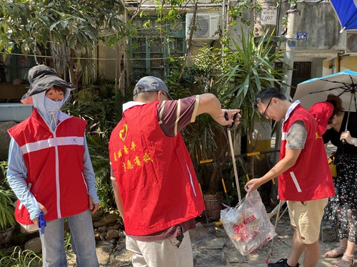 志愿者們撿拾小區路面垃圾 許林佳 攝