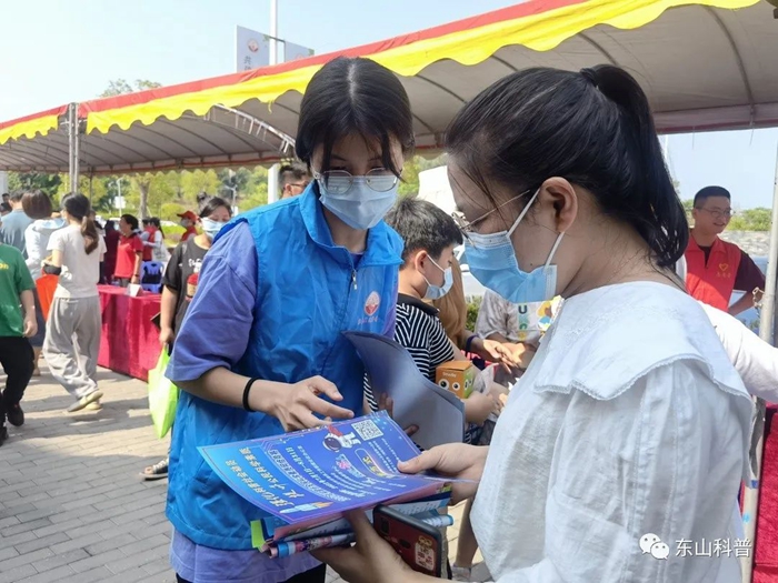 東山青年志愿者積極向到場的青少年宣傳防溺水安全知識、法治教育、毒品安全教育和創城文明宣傳,引導青少年學會保護自己、掌握更多“自護”本領,鼓勵更多青少年投身志愿服務活動。