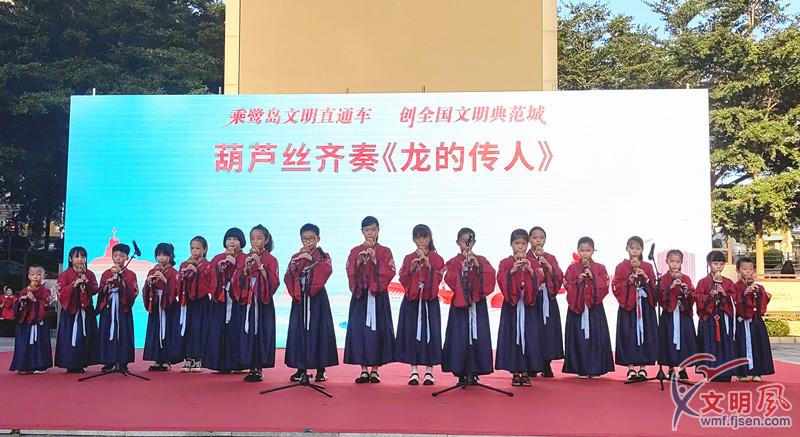 孩子們帶來葫蘆絲齊奏《龍的傳人》(夏菁 攝)