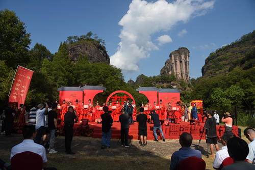 2022年8月4日,武夷山市在玉女峰下為9對新人舉辦“朱子婚禮”(吳利武攝)