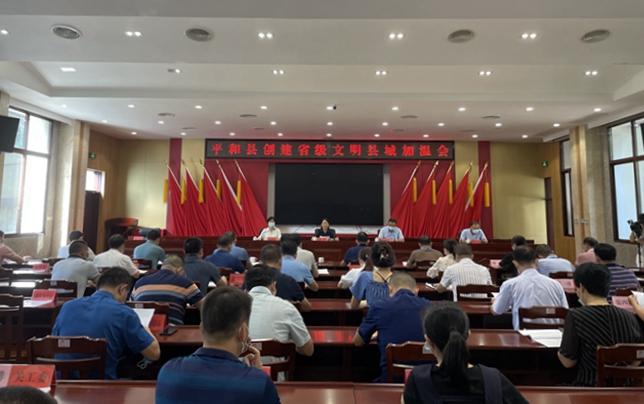 文明風8月15日訊 8月11日,平和縣召開創建省級文明縣城工作加溫會,縣委常委、宣傳部部長李真,縣人大常委會副主任朱順忠,副縣長吳映紅,縣政協副主席曾文漢出席會議。吳映紅主持會議。