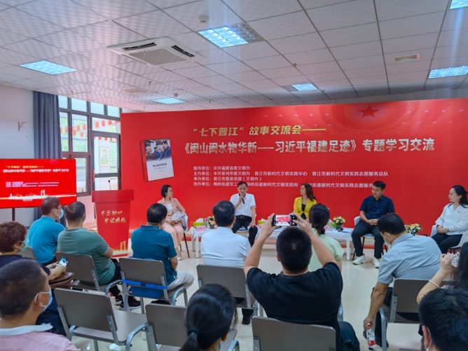 2022年7月1日,《閩山閩水物華新——習(xí)近平福建足跡》主題宣講在晉江市新時(shí)代文明實(shí)踐中心舉行。福建省首批“新時(shí)代宣講師”許明月和習(xí)近平總書記調(diào)研晉江的親歷者黃趁銀,圍繞“深入學(xué)習(xí)《閩山閩水物華新——習(xí)近平福建足跡》 傳承弘揚(yáng)‘晉江經(jīng)驗(yàn)’”,結(jié)合晉江實(shí)際情況進(jìn)行了深入淺出的宣講。