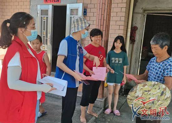 志愿者登門宣傳文明創建。(汀溪鎮供圖)