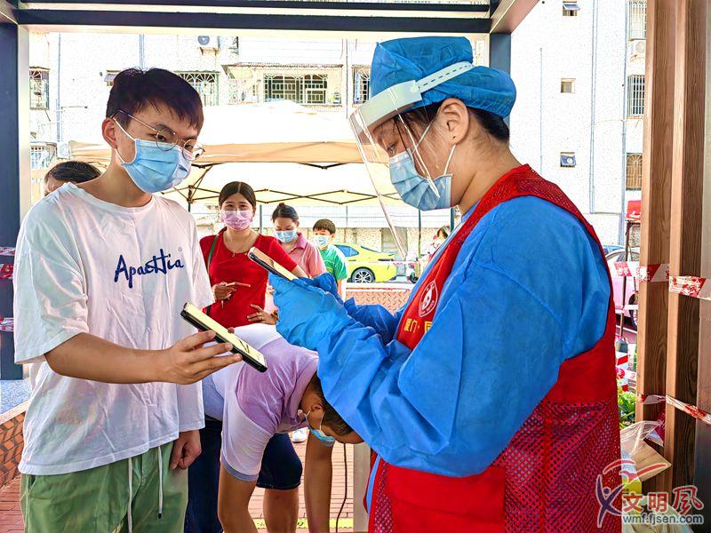 志愿者在同安核酸檢測采樣現場(劉永伙 攝)