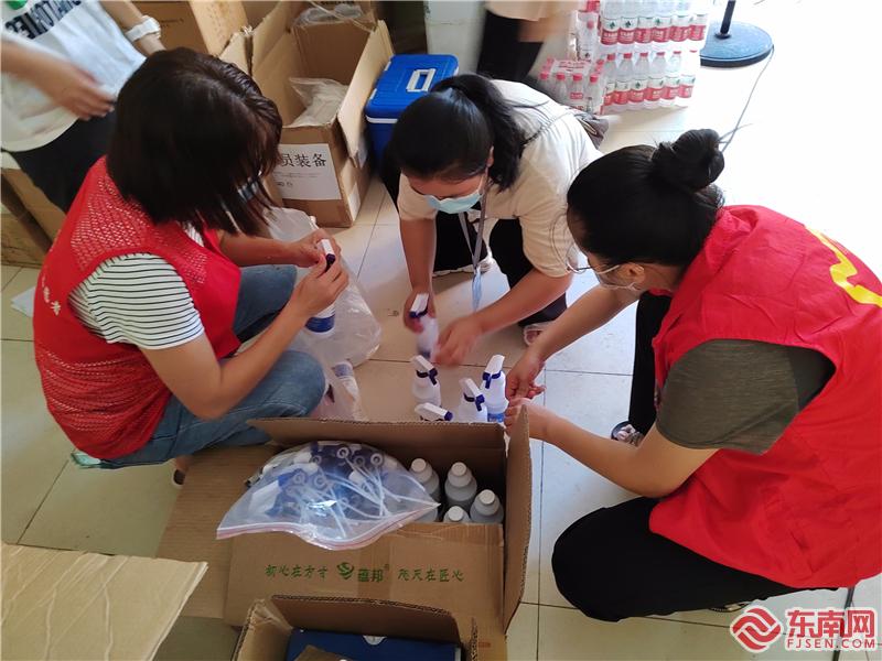 孫厝社區工作者們在清點防疫物資(僑英街道新時代文明實踐所供圖)