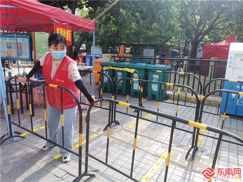鳳林美社區志愿者在維持采樣點秩序(僑英街道新時代文明實踐所供圖)