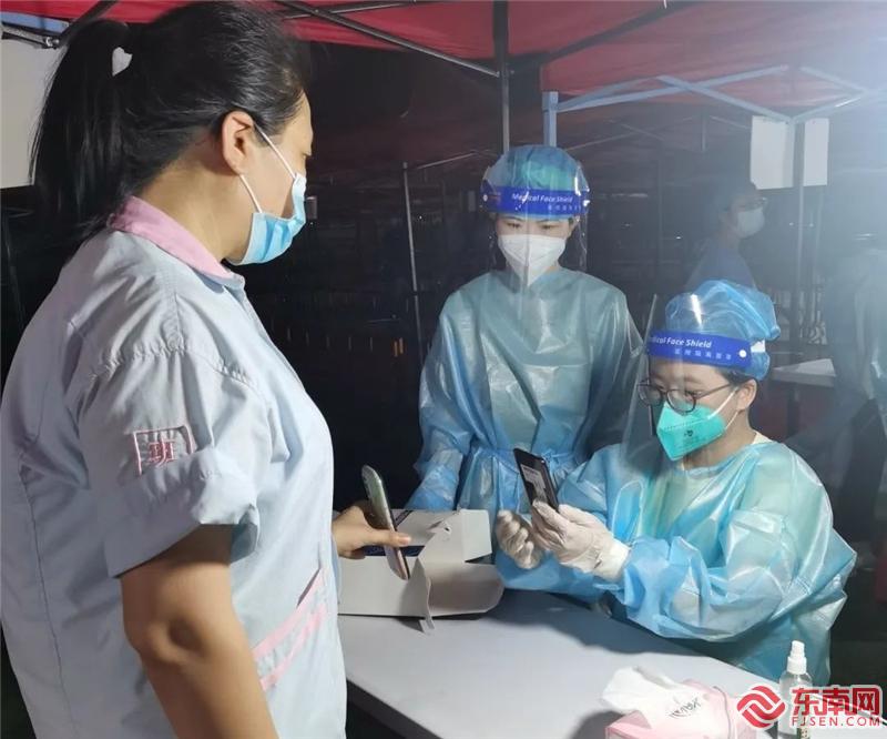 三秀社區新時代文明實踐站志愿者參與核酸采樣點服務。(集美·誠毅志愿者聯盟供圖)