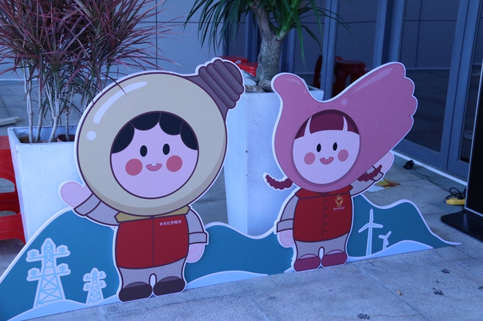 在國網長樂供電公司里,兩個卡通人物憨態可掬,引人注目。這是他們志愿服務的新代言人——“長小文和電小明”。其中戴著鴿子頭套的“長小文”身穿“電力義點亮”志愿服務紅馬甲,戴著燈泡頭套的“電小明”身著國網福建電力“雙滿意”(長樂紅色榕光)共產黨員服務隊紅馬甲。它們的形象展示了文明單位在志愿服務上的創新實踐。