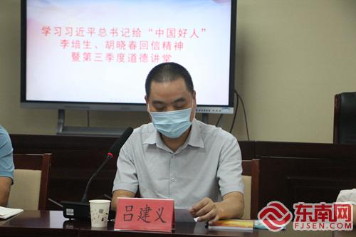 文明風8月22日訊 為深入學習貫徹習近平總書記給“中國好人”李培生、胡曉春回信精神,響應省委文明辦倡議號召,8月19日,南平市委文明辦組織召開學習習近平總書記給“中國好人”李培生、胡曉春回信精神座談會暨第三季度道德講堂,邀請各級文明單位代表,以及南平市“身邊好人”“道德模范”代表郭忠、呂建義參會,集體學習習近平總書記重要回信精神,座談交流學習心得感悟。南平市委文明辦副主任賴丹萍主持會議。