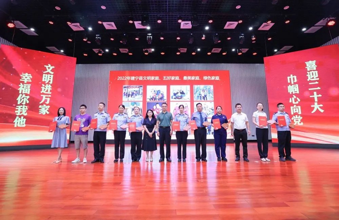 文明風8月22日訊 8月19日,建寧縣婦聯、縣委文明辦、縣直機關黨工委聯合舉辦2022年度建寧縣文明家庭、五好家庭、最美家庭、綠色家庭頒獎儀式暨“好家庭、好家教、好家風”主題宣講會。