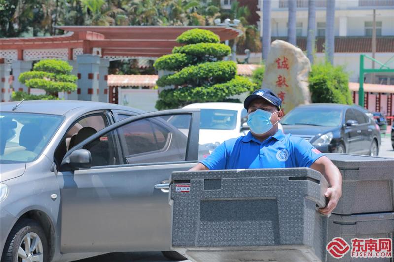 馳鷹救援隊隊員協助核酸檢測點搬運物資(黃俊高 攝)
