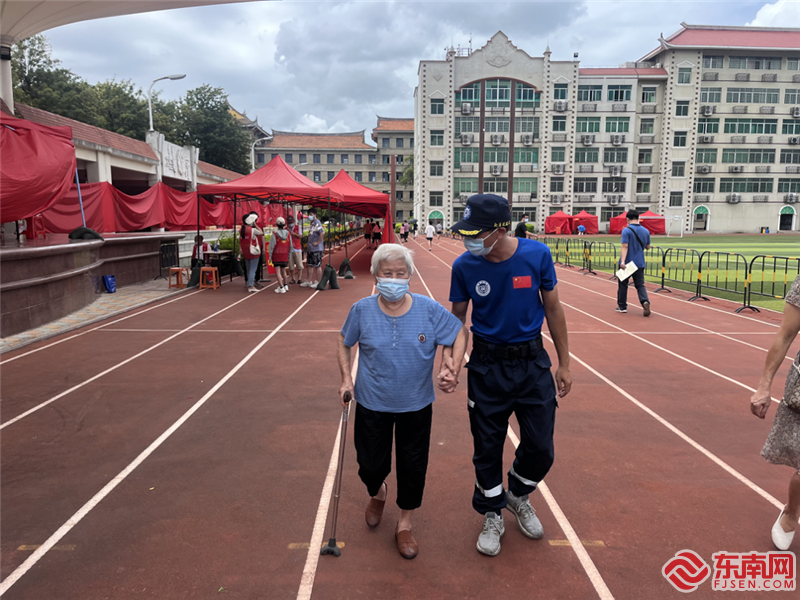 一張張可愛的面孔,一句句貼心的話語,隊員頂著似火的驕陽,親力親為地引導居民分區有序參檢,協助愛心通道的老弱病殘盡快完成核酸檢測,縮短采樣時間,化解潛在風險。