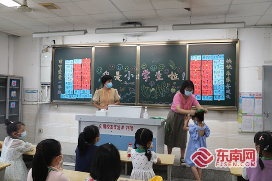 “孩子們?nèi)雽W(xué)后,他們面臨著第一個問題就是結(jié)交新朋友,所以我們提前給孩子布置一個小任務(wù),讓他們準(zhǔn)備自己喜歡的一種自我介紹。到了開學(xué)第一天,在自我介紹那個環(huán)節(jié),各班老師會結(jié)合現(xiàn)場情況,對孩子們的文明禮儀進行引導(dǎo)?!痹撔PiL曾鳳蓉告訴記者,通過這樣的方式,給孩子們上好“文明第一課”。