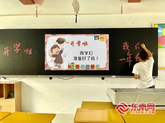 鯉城區(qū)第三實驗小學(xué)老師提前對教室進行布置。學(xué)校 供圖