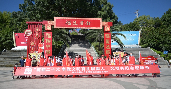 文明風8月31日訊 8月30日,屏南縣舉行“喜迎二十大 爭做文明有禮屏南人”文明實踐志愿服務活動啟動儀式,屏南縣新時代文明實踐志愿服務總隊、古峰鎮新時代文明實踐所(站)志愿服務隊、青年志愿服務隊、巾幗志愿服務隊、屏南一中“浩德”志愿服務隊等8支隊伍參加。