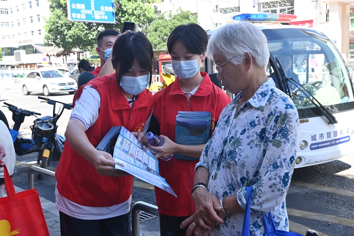 志愿者給群眾講解創城應知應會知識。陳華盛 攝