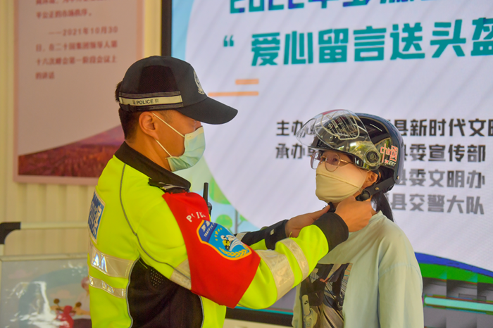 “我們希望通過這種方式讓市民自覺養成佩戴頭盔安全出行的習慣,以宣促防,提升騎乘人員安全意識,增強自我保護,做到騎乘摩托車和電動車佩戴安全頭盔安全文明出行。”縣交通警察大隊綜合中隊中隊長薛鈞元說。