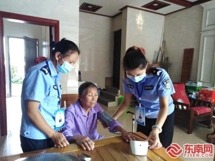 定期上門為獨(dú)居老人測(cè)量血壓。鄭潔 攝