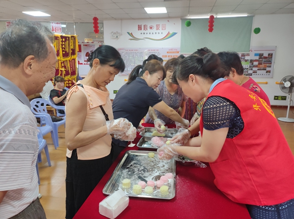志愿者與社區群眾一起制作月餅。華安縣微尚社會工作服務中心供圖