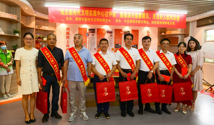國網福清市供電公司工作人員為道德模范、身邊好人送祝福。 國網福清市供電公司供圖