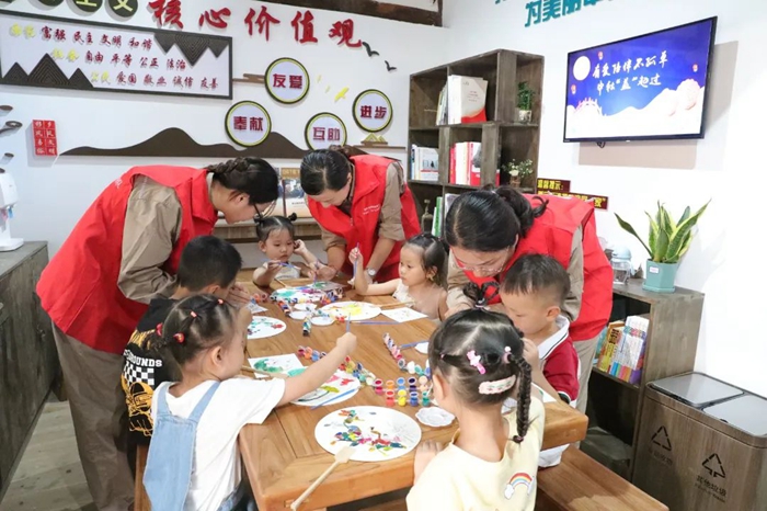活動以“繪畫中秋竹扇、講中秋習俗、視頻團圓、吃月餅、贈送書籍”為主要內容。整個活動現場充滿了歡聲笑語,“親”意融融,用情牽手留守兒童,用愛溫暖稚嫩童心。