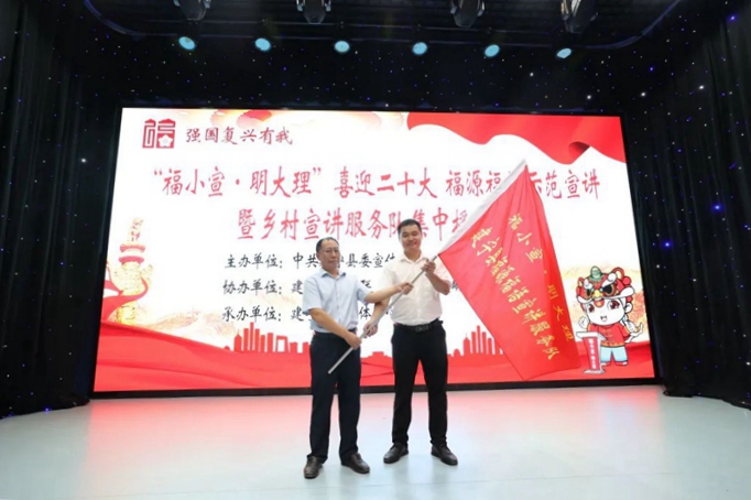 儀式上,連云進就開展好“福小宣·明大理”福源福語宣講活動進行安排部署,對當前和今后一段時間的理論宣講內容和宣講工作重點提出具體要求,并為各鄉(xiāng)鎮(zhèn)福源福語宣講服務隊授旗。