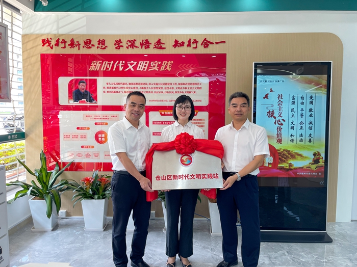 文明風9月21日訊 為推動新時代文明實踐深入開展、落地生根,滿足群眾精神文化生活新期待,打通宣傳群眾、教育群眾、關心群眾、服務群眾“最后一公里”。9月20日上午,“倉山區新時代文明實踐站”在國網倉山供電服務中心授牌成立,這是國網福州供電公司在福州市區首個授牌的新時代文明實踐站。中共倉山區委常委、宣傳部部長李亦仁,國網福州供電公司黨委委員、工會主席李加利親臨現場授牌,中共倉山區委文明辦、倉前街道主要領導及分管領導,國網福州供電公司黨建部主要負責人等參加授牌儀式。