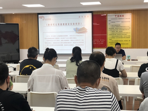 活動在一首《公民道德歌》的歌聲中拉開序幕,全體參會人員深入學習習近平總書記給“中國好人”李培生、胡曉春重要回信精神,領會感悟“中國好人”最可貴的精神品質。隨后,黨建工作部主任梁正凱圍繞“深化道德教育引導”“推動道德實踐養成”“抓好網絡空間道德建設”“發揮制度保障作用”“加強組織領導”等五個方面,深入淺出地對《新時代公民道德建設實施綱要》重點內容進行宣講。