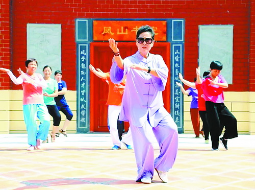 太極拳課上,學員一招一式有模有樣。