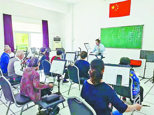 老年學員認真學習拉二胡。