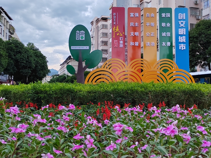 公益廣告“靚”起來,譜好“面子”曲。在主次干道、公園廣場、公交站點(diǎn)等重要節(jié)點(diǎn)增設(shè)公益廣告,對老舊破損的公益廣告進(jìn)行更新提升,同時(shí)將當(dāng)?shù)亍盎ㄠl(xiāng)、畫鄉(xiāng)、茶鄉(xiāng)”的文化和地域特色融入到廣告設(shè)計(jì)中,通過“潤物細(xì)無聲”的引導(dǎo)讓市民在潛移默化中接受文明的洗禮,營造“抬眼可見、駐足可觀、步步文明”的創(chuàng)城氛圍。2022年,城區(qū)增設(shè)燈桿旗862套、景觀小品50余個(gè)、宣傳欄50余處。