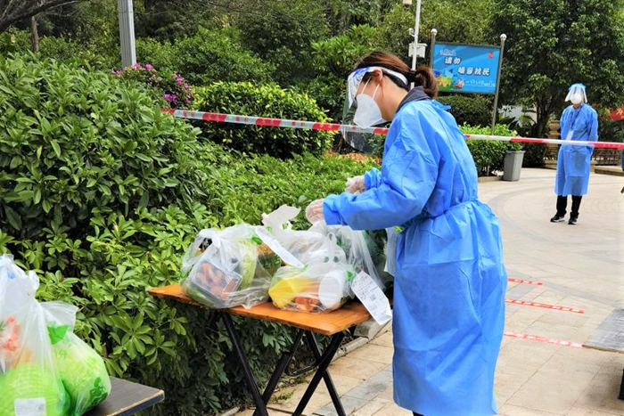 下沉干部在小區協助配送生活物資
