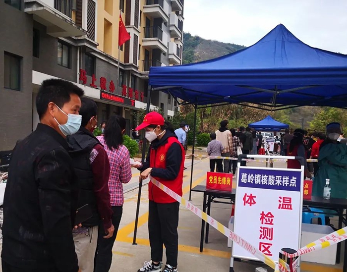 黨員志愿者在核酸檢測現場協助