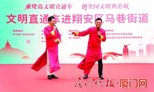 八段錦、歡樂腰鼓、健身舞……近日,由廈門市委文明辦指導,廈門日報社、翔安區委文明辦主辦的文明直通車,開進有閩南千年古鎮之稱的翔安區馬巷街道?,F場既有精彩的文藝演出,還有各種暖心免費服務。主辦方還通過文明知識搶答的方式,將文明禮儀和文明創建知識傳遞給廣大群眾。