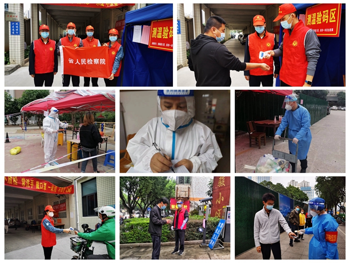 文明風11月7日訊 近日,在福建省檢察院下發《關于省院機關進一步發揮黨支部和廣大黨員干部作用打贏疫情防控殲滅戰的通知》《關于給省院機關居家辦公黨員的溫馨提示》后,省檢察院廣大居家辦公黨員干部積極響應發揮黨員干部先鋒模范作用,在做好個人防護措施、確保安全的前提下,主動就近就地投身“近鄰黨建”,深入社區協助開展現場引導、測溫掃碼、排查風險、核酸檢測等志愿服務工作,落細落實創建“無疫小區”,助力福州打贏疫情防控殲滅戰,在戰“疫”大考中書寫檢察擔當。